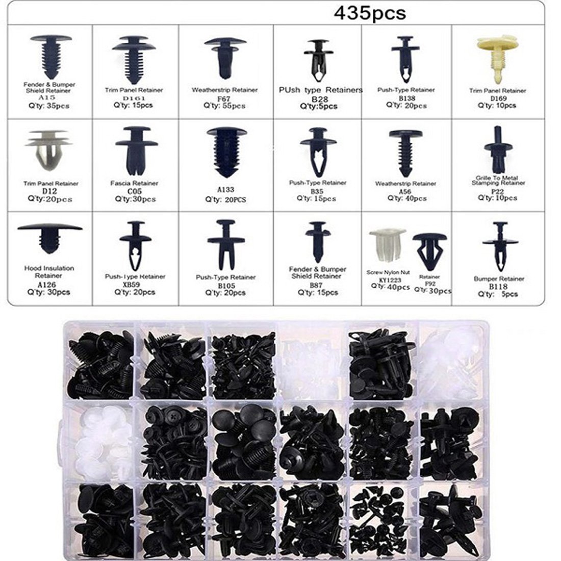 Σετ 435 Πλαστικά Κουμπώματα Κλιπς σε Κασετίνα 18 τύποι w11316