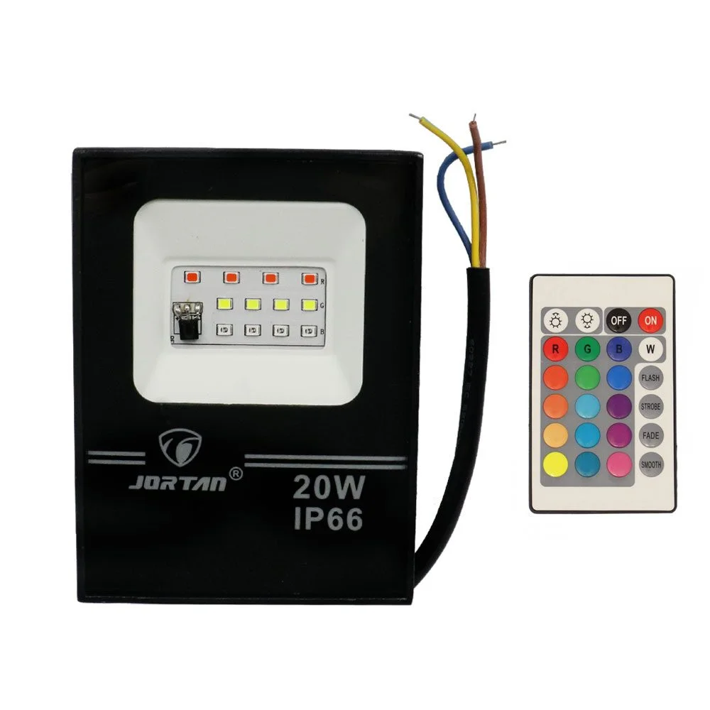 LED Αδιάβροχος Προβολέας 20W με Ασύρματο Τηλεχειριστήριο 12 SMD 1000LM 220V RGB IP66 JORTAN-TP20WRGB