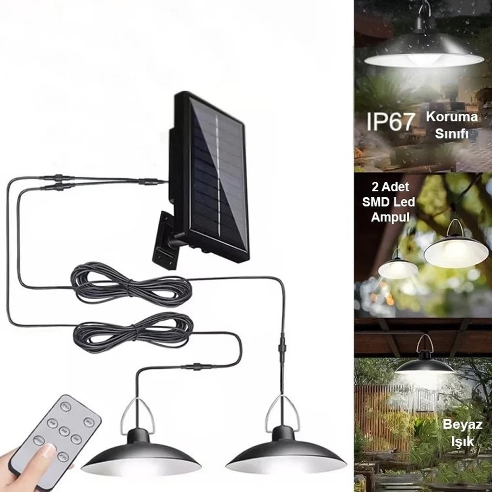 LED Ηλιακά Επαναφορτιζόμενα Κρεμαστά Φωτιστικά με Χρονοδιακόπτη & Τηλεχειριστήριο σε Ψυχρό Λευκό Φωτισμό XF-707-2
